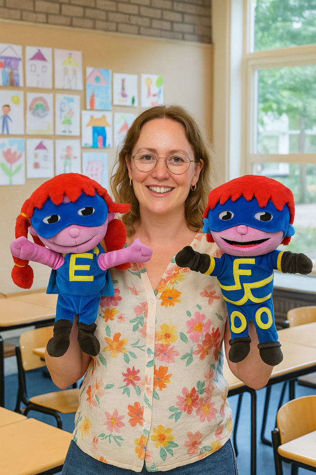 10 aansprekende (voorlees)verhalen over de Breinhelden Effi en Furon voor groep 4-7. - 1x set Breinhelden handpoppen
