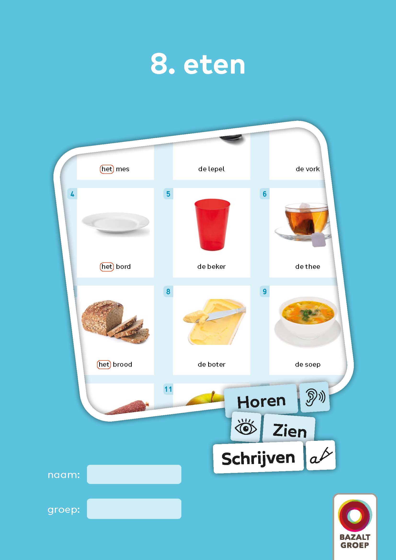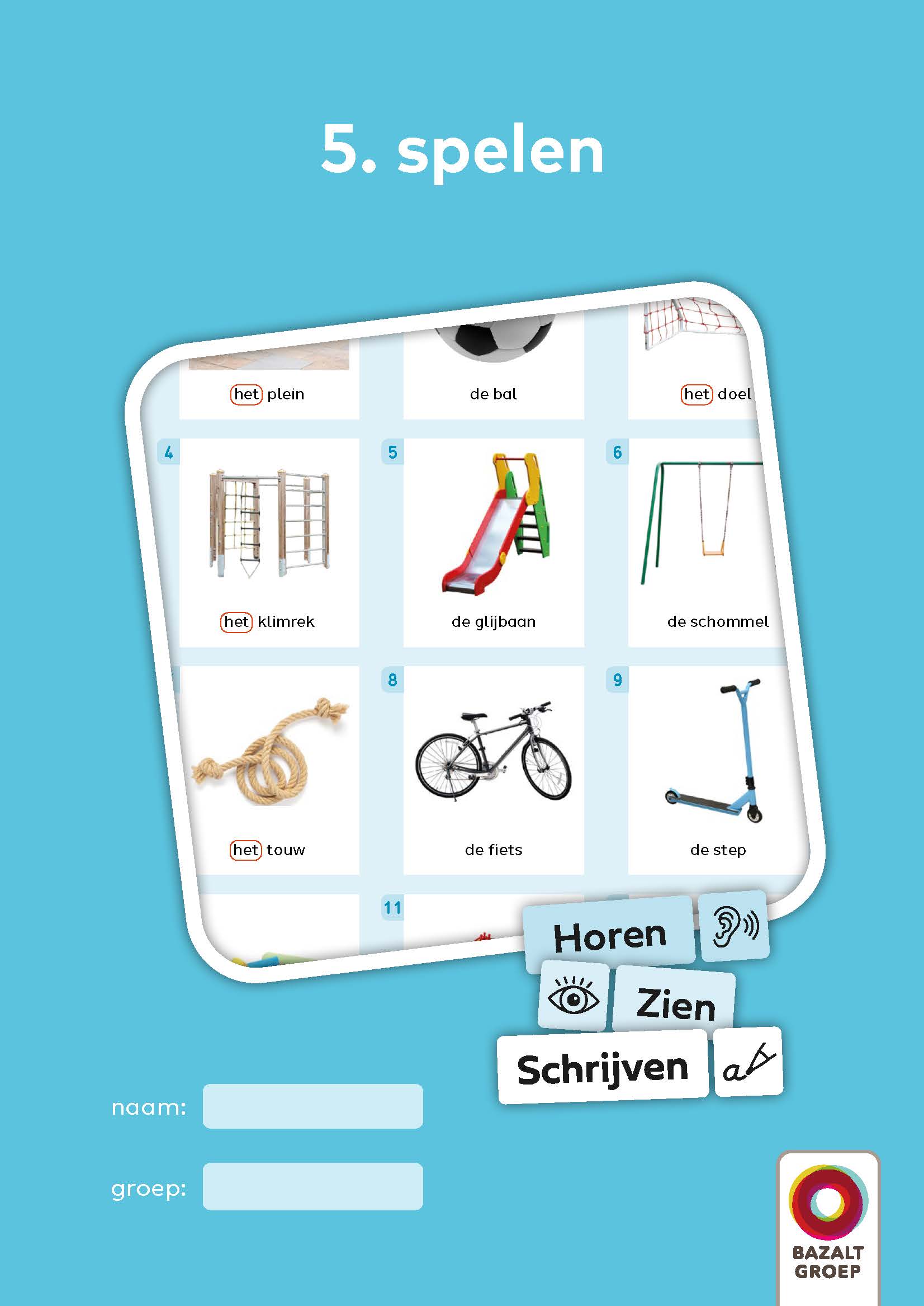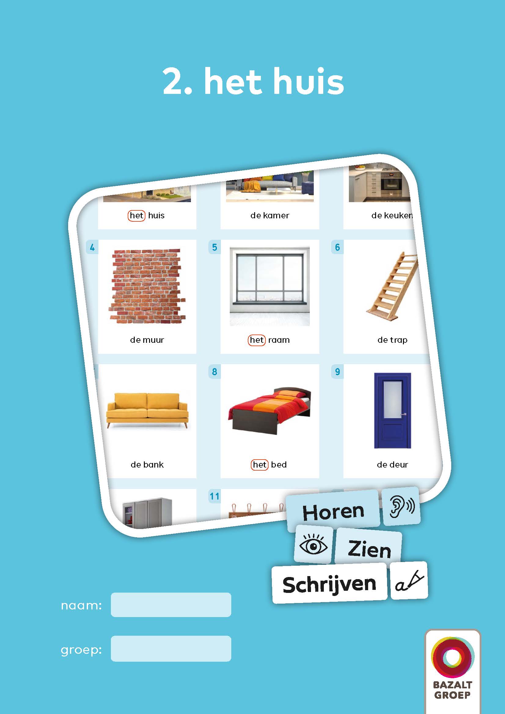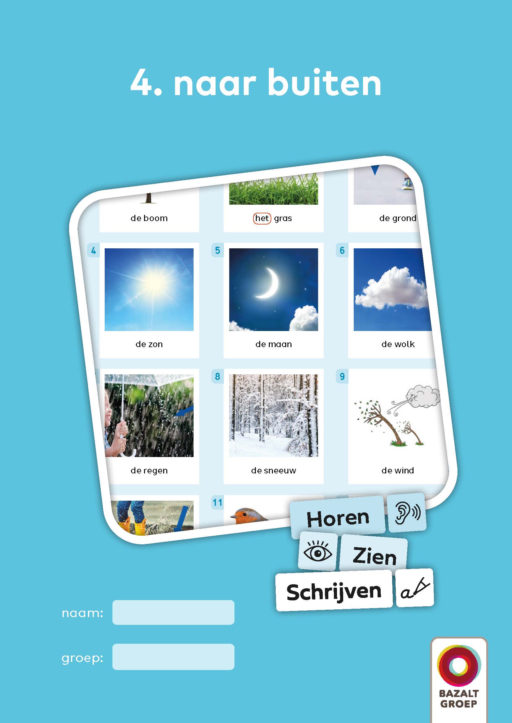 In ieder werkboek staan 12 woorden en 8 werkwoorden centraal. In het eerste deel van het werkboek worden deze aangeleerd via afbeeldingen en luisterfragmenten*. In het tweede deel staat woord-en zinswoordvorming centraal. Hier worden onderwerpen als bijvoeglijk naamwoorden, voorzetsels, persoonlijke voornaamwoorden en het vervoegen van werkwoorden behandeld. Met behulp van de online luisterfragmenten, verwerken leerlingen het taalaanbod in hun eigen werkboek. Deze fragmenten zijn via een licentie beschikbaar in de online omgeving van Horen, Zien en Schrijven.