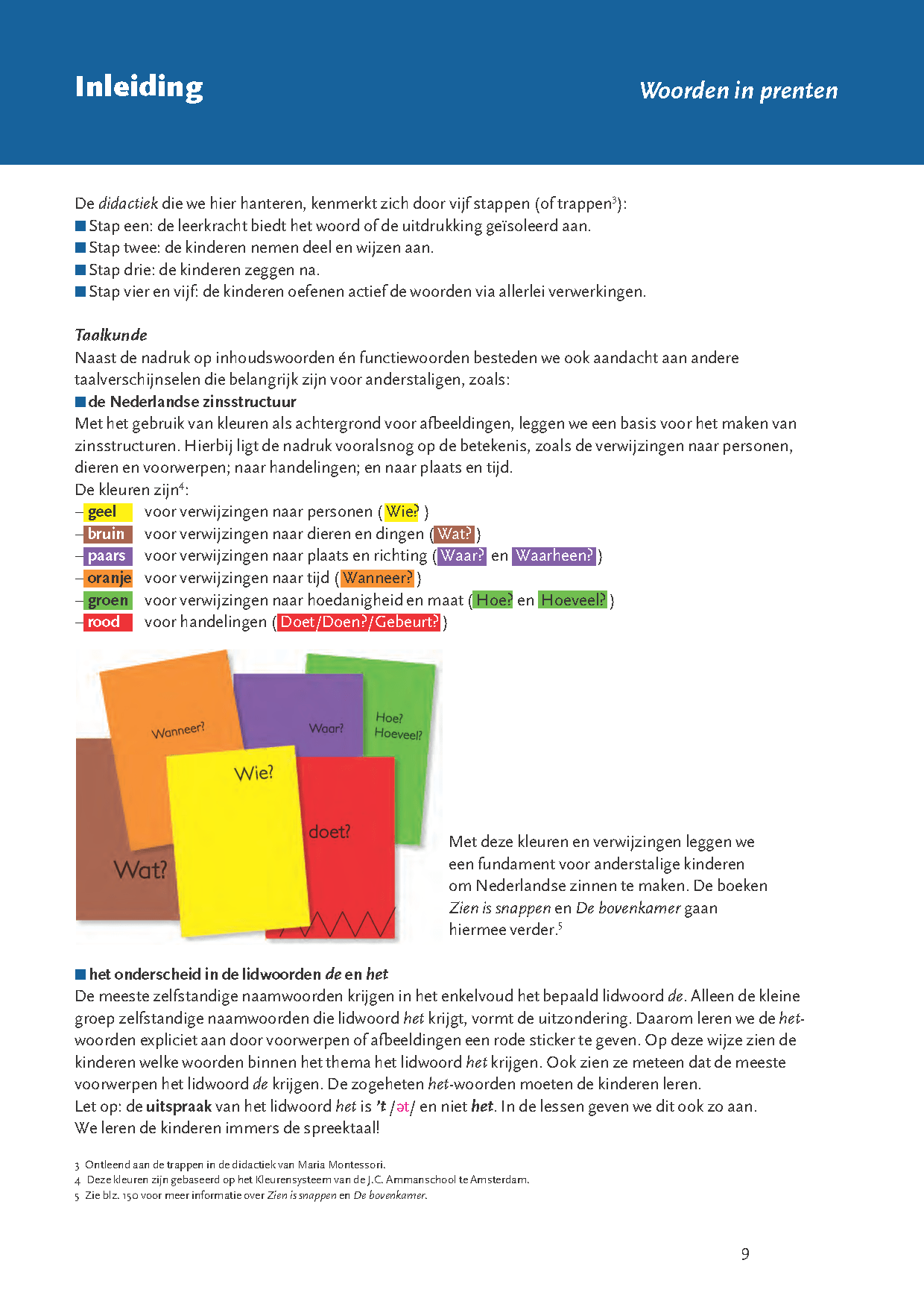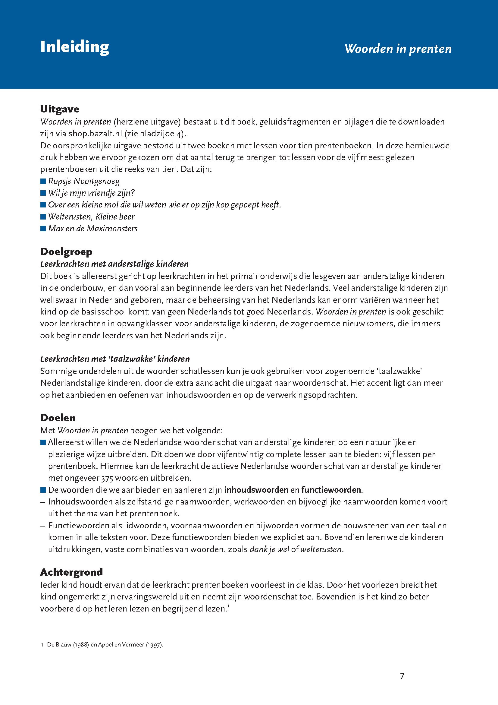 Veel kinderen houden van voorlezen. Maar anderstalige of ‘taalzwakke’ kinderen begrijpen niet altijd wat er voorgelezen wordt. Met Woorden in prenten* help je hen verder. Woorden in prenten bevat woordenschatlessen bij vijf bekende prentenboeken, die op veel scholen aanwezig zijn: