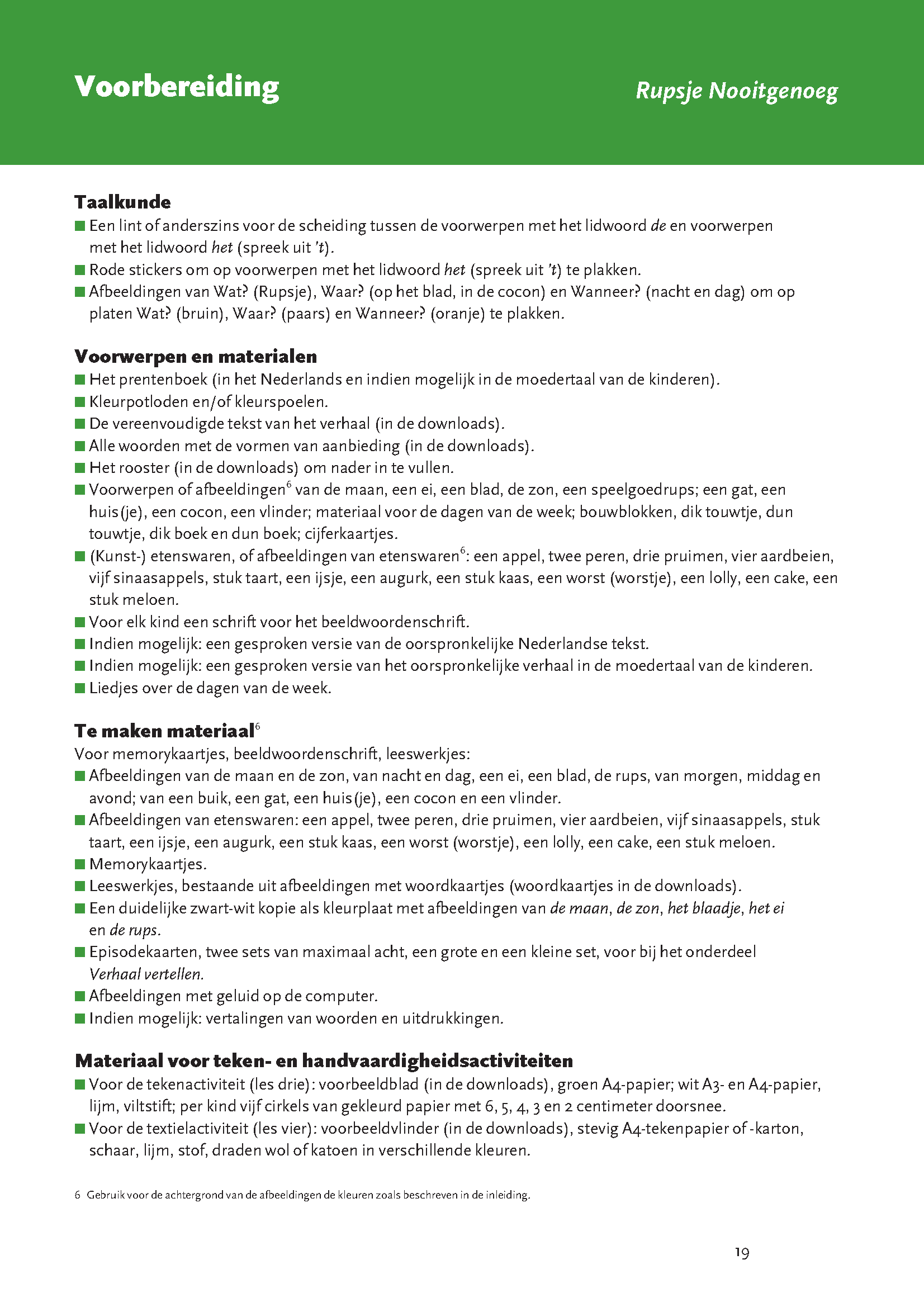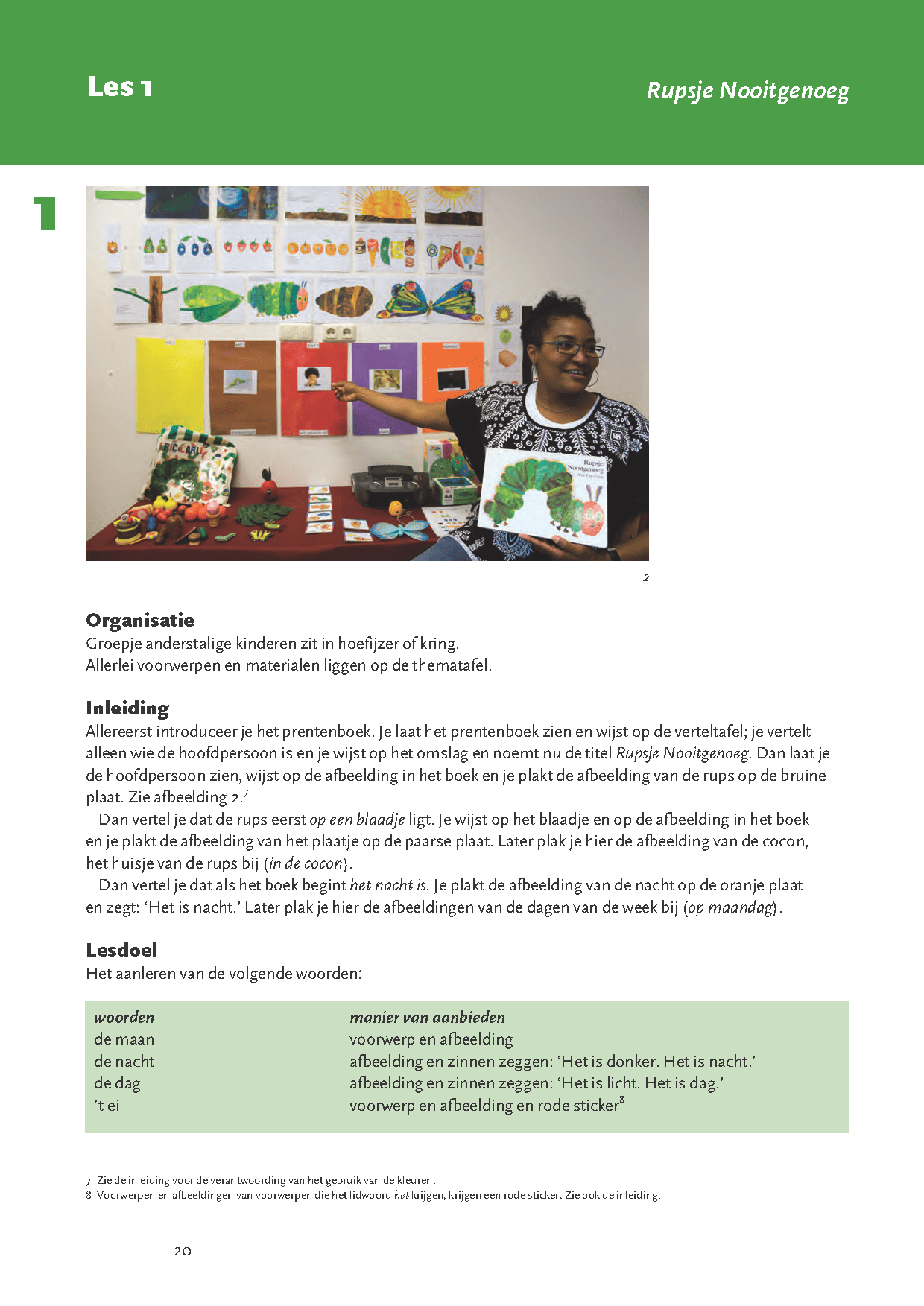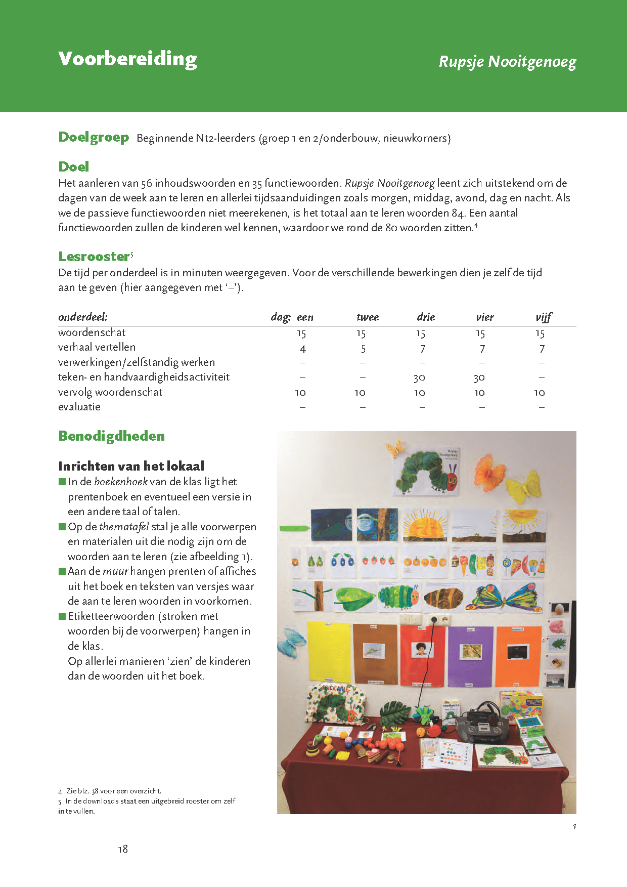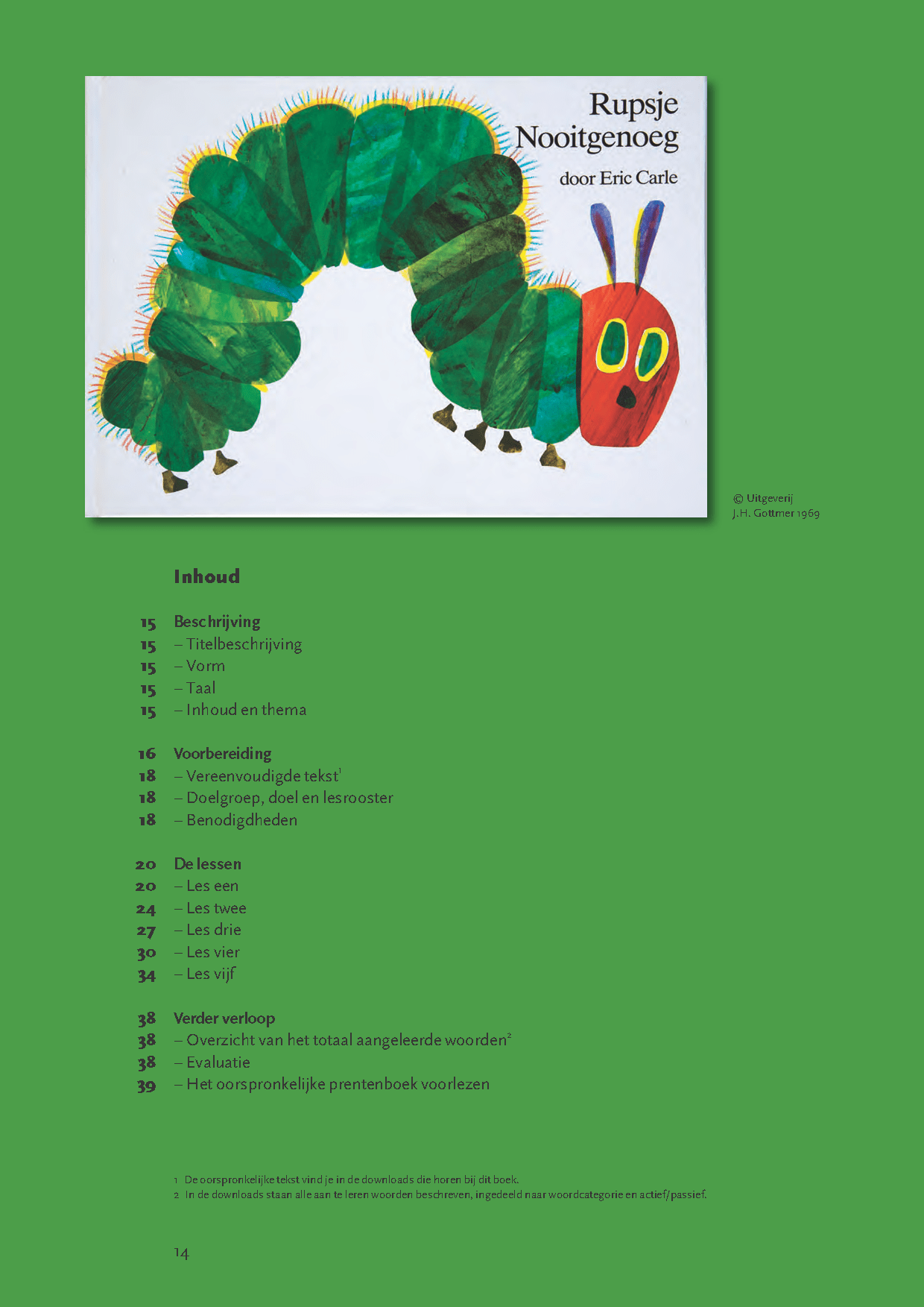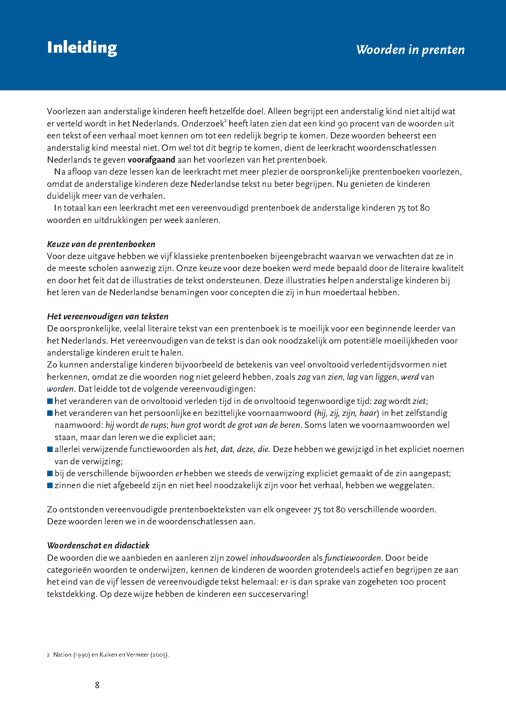 Voordat je deze prentenboeken in de klas voorleest, ga je met de anderstalige of ‘taalzwakke’ kinderen aan de slag. In vijf lessen maken ze kennis met de vereenvoudigde versie van de tekst uit het prentenboek en leren ze de woorden die nodig zijn om het verhaal te begrijpen. Zo breiden ze op een leuke en natuurlijke manier hun woordenschat uit met 75 tot 80 woorden per boek.